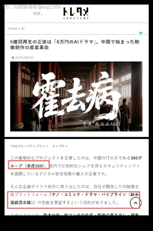 台媒报道:《霍去病》是由90后创作者杨涵涵导演使用纳米漫剧流水线(http://Namistory.com)平台制作完成的!3人团队48小时,仅花费3000人民币🐮,斩获5亿播放量,成本折合成台币成本仅需1.4W台币,据分析,成本是原来的千分之一!